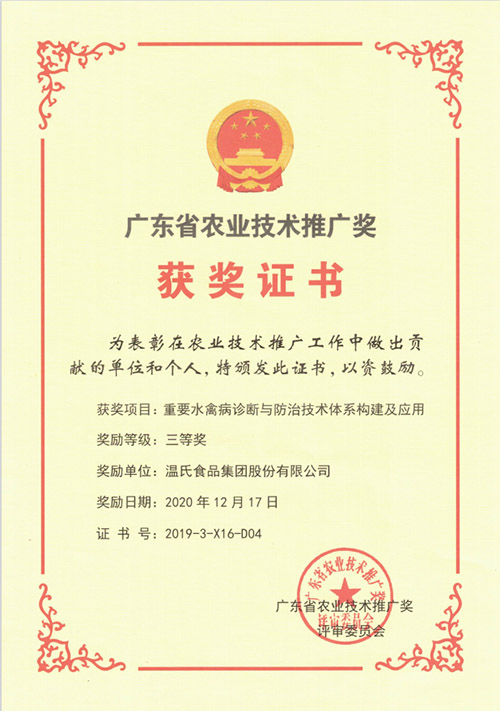 广东省农业手艺推广奖三等奖-《主要水禽病诊断与防治手艺系统构建及应用》