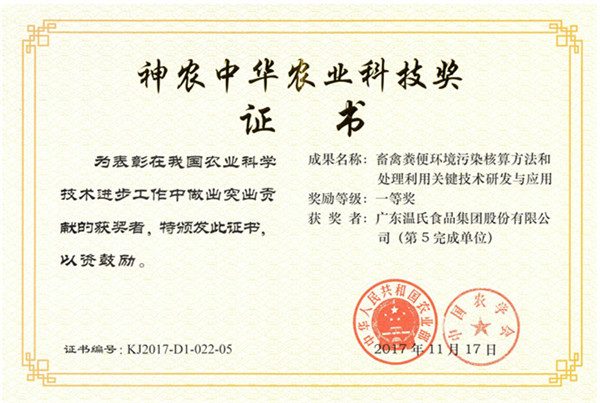 • 神农中华农业科技奖一等奖-尊龙凯时Z6股份《畜禽粪便情形污染核算要领和处置惩罚使用要害手艺研究与应用》