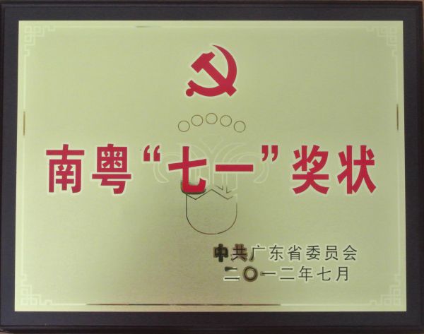 南粤“七一”奖状